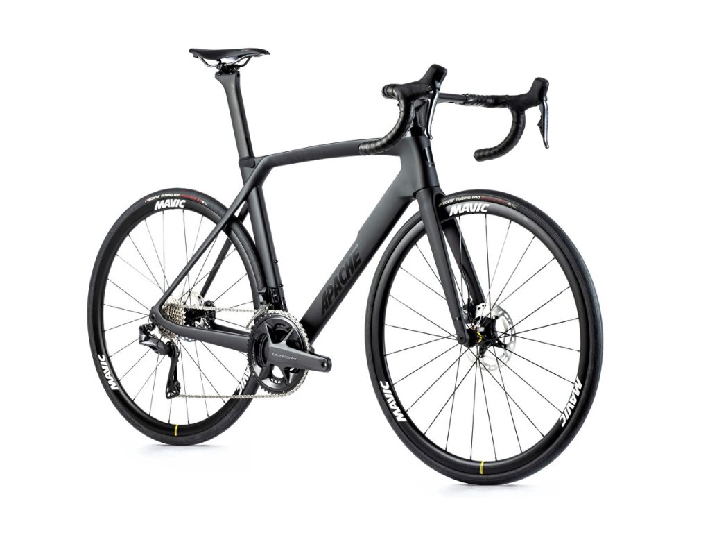 Silniční kolo Apache Gila RS C1 je postavené na prémiovém karbonovém rámu, vybaveném bezdrátovou sadou SHIMANO Ultegra Di2 a pohonem 2x12 a zapletnými koly Mavic Ksyrium 30