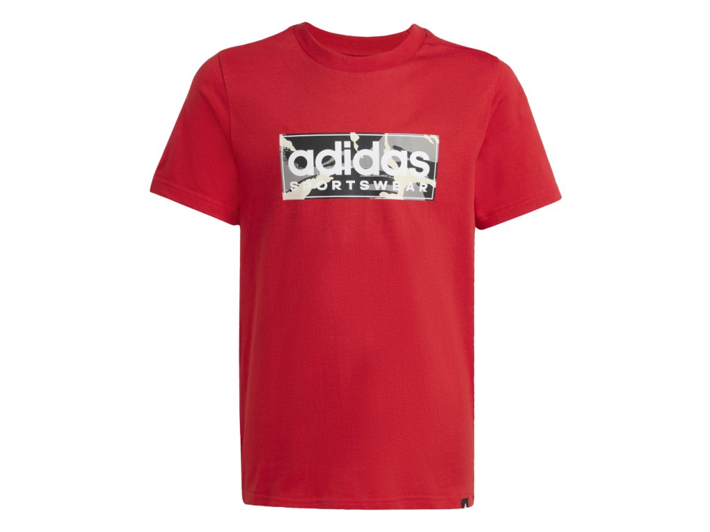 Maskovací potisk a logo adidas - dvě klasiky, které není třeba představovat. Toto juniorské tričko ti dodá stylový vzhled. Je vyrobené z měkkého bavlněného žerzeje, který ti dopřeje pohodlí ve škole i na srazu s přáteli.