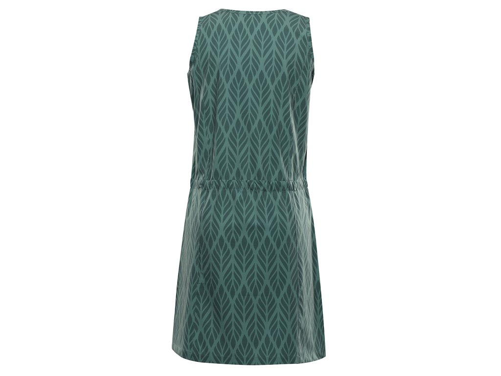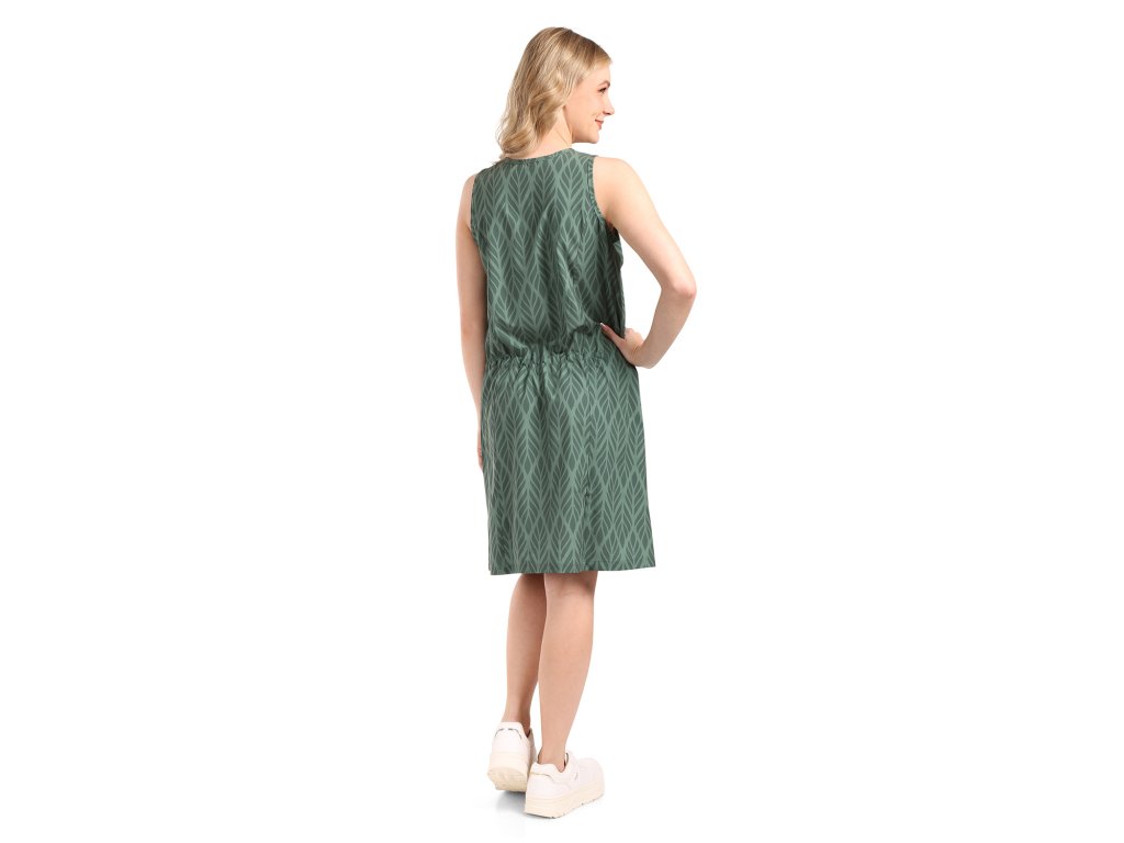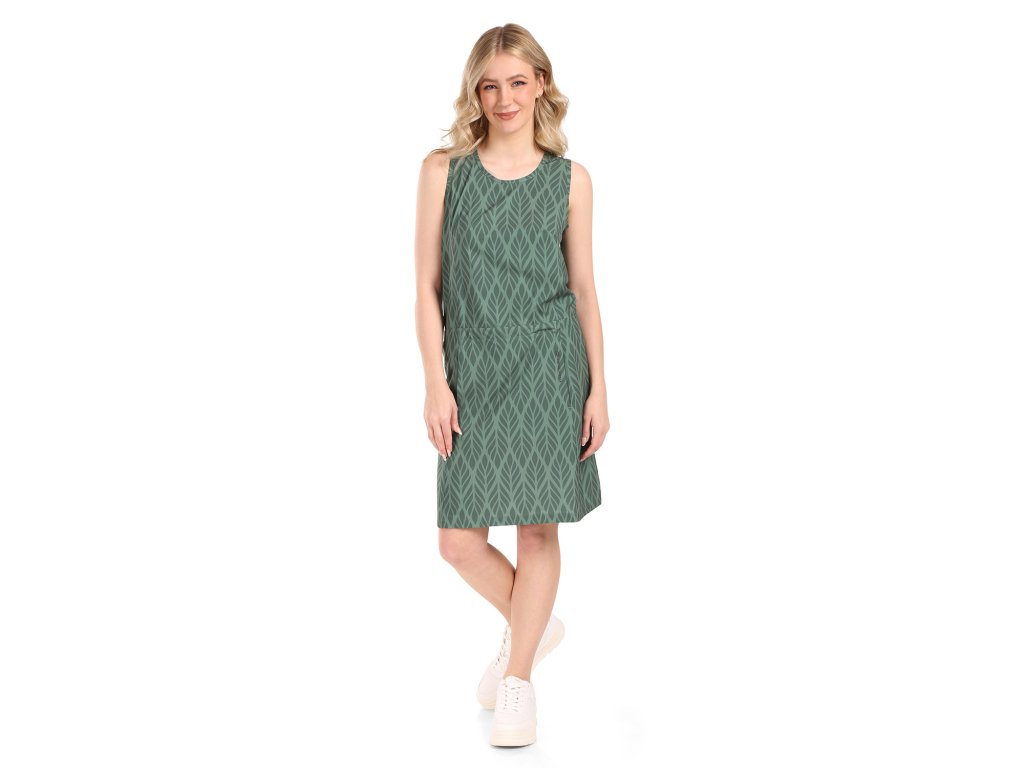 Přiléhavé dámské šaty sportovního typu. Mají širší ramínka a na předním díle je potisk. Šaty mají délku nad kolena. Jsou vyrobené z bavlněného materiálu.