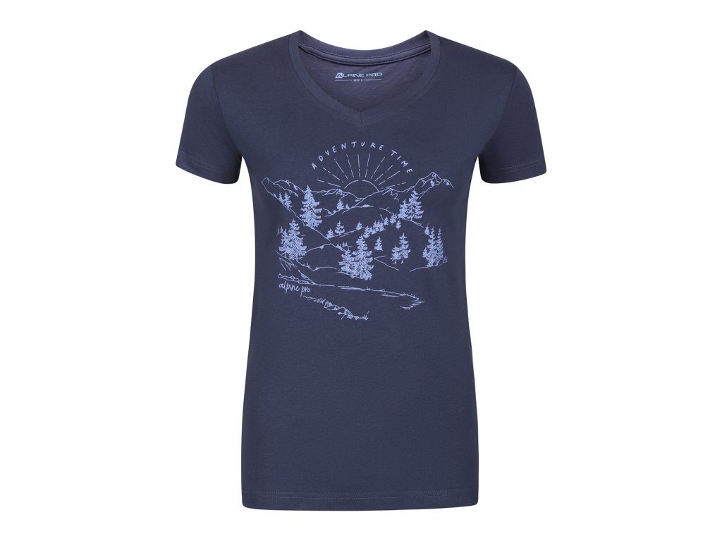 Bavlněné dámské tričko s krátkými rukávy, kulatým výstřihem a kontrastním postiskem.