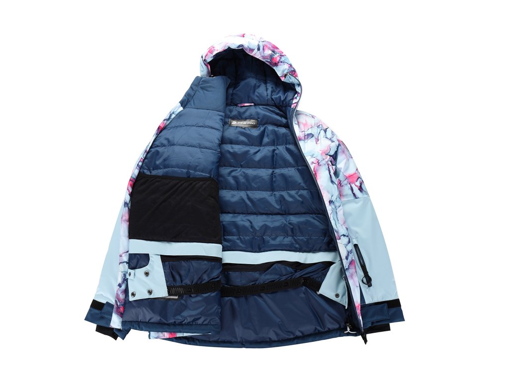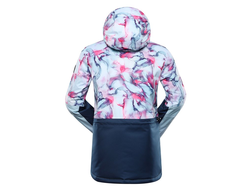 Dámskou lyžařskou bundu s membránou OMEQA využijete na lyžích i snowboardu a zajistí vám dokonalý komfort a pohodlí při sněžení, větru i v mrazivých zimních dnech. Funkční materiál s membránou PTX SNOW nepromokne, je prodyšný a rychle odvádí pot od těla, což je při lyžování i ostatních zimních sportech velký benefit. Materiál, doplněný speciální úpravou DWR, dosahuje hodnoty vodního sloupce 10000 mm a prodyšnosti 10000g/m2/24h. Pro maximální pohodlí při sportování nabízí zimní bunda OMEQA hřejivou výplň a prošívanou podšívku, podlepené švy chránící proti průniku vlhkosti k tělu, praktickou kapuci se stahováním, kterou oceníte, pokud vás zastihne nepříznivé počasí, anatomicky tvarované rukávy, ve spodní části stahovatelné manžetou na suchý zip, s vnitřní elastickou manžetou. Odvětrávání v podpaží se zipy, sněhový elastický pás a prodloužená zadní část s regulací šířky na gumičku, tyto funkční vychytávky jsou též součástí dámské zimní bundy. Zaujme i výrazný celopotisk, který dělá tuto bundu velmi unikátní.