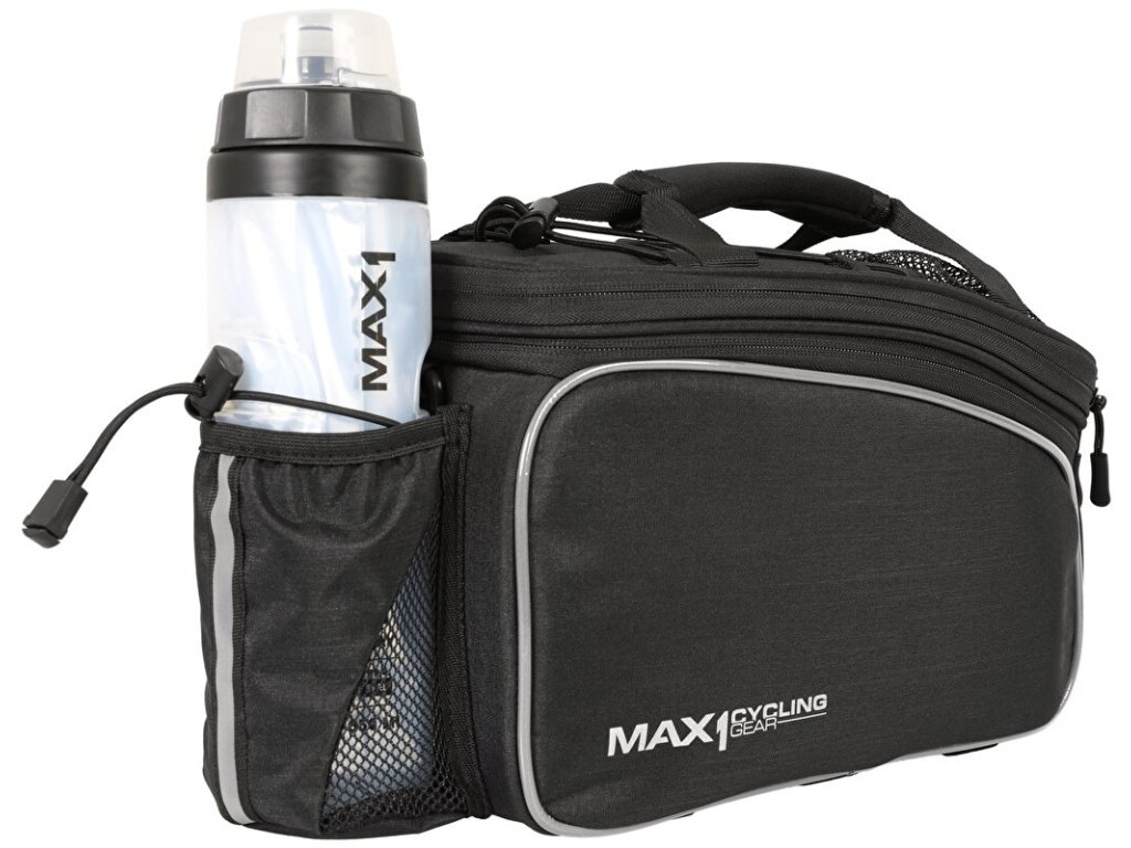- víceúčelová brašna na nosič s nastavitelným objemem (rozepnutím horního zipu)