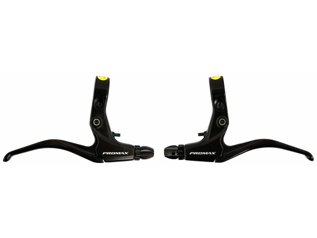 Brzdové páky PROMAX pro "V" brzdy a použití 3- 4 prstů, Alu objímka i páka, barva černá. Lze nastavovat vzdálenost pák od řídítek.Distributor: Cyklomax, spol. s r.o., Pardubická 504, 533 52 Srch. E-mail: info@cyklomax.cz