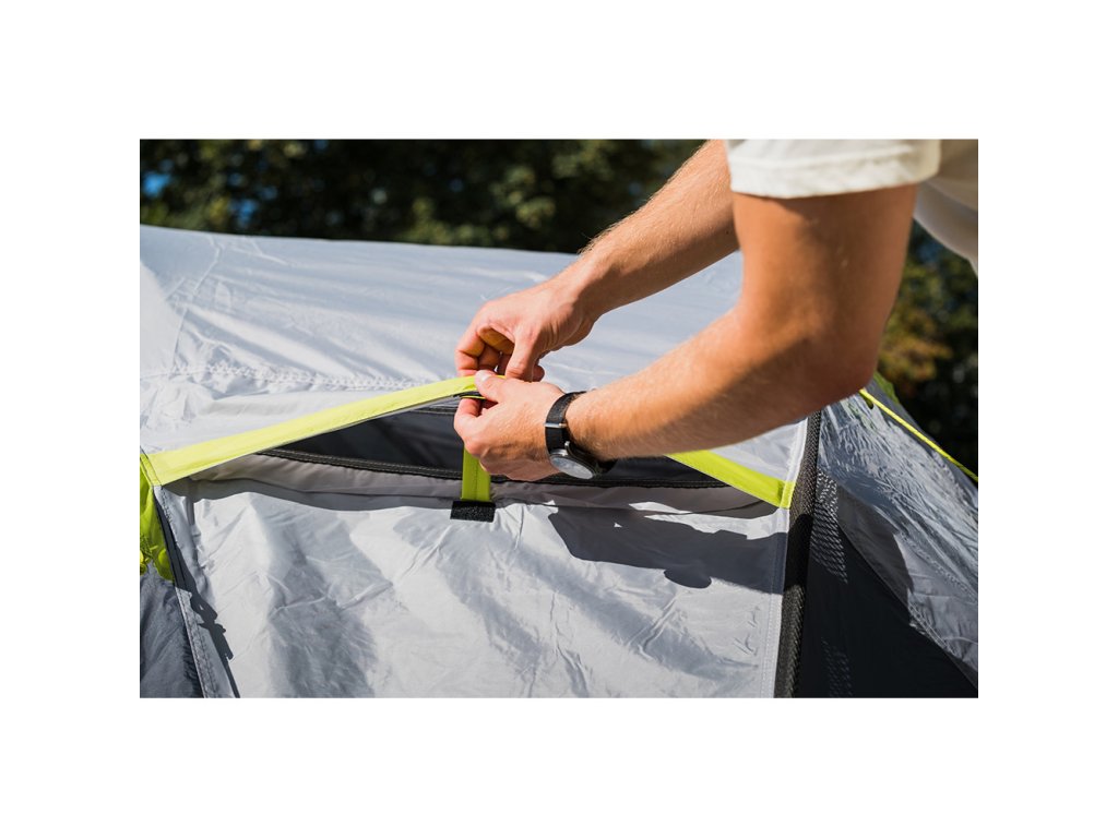 - Vnější stan: polyester Taffeta68D, PU zátěr 3000 mm, podlepené švy, PVC okna