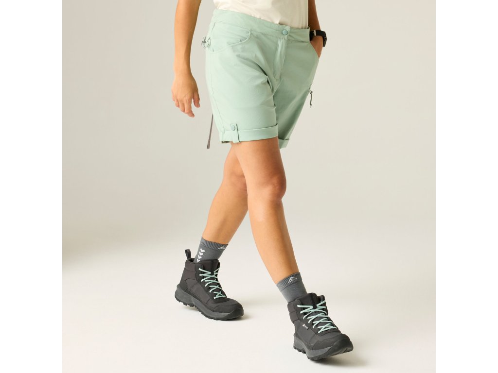 Delší volnější dámské kraťasy s kapsami. Kraťasy jsou vyrobené z funkčního materiálu Silver, který se jednoduše udržuje, rychle schne a uchovává si dokonalý tvar.