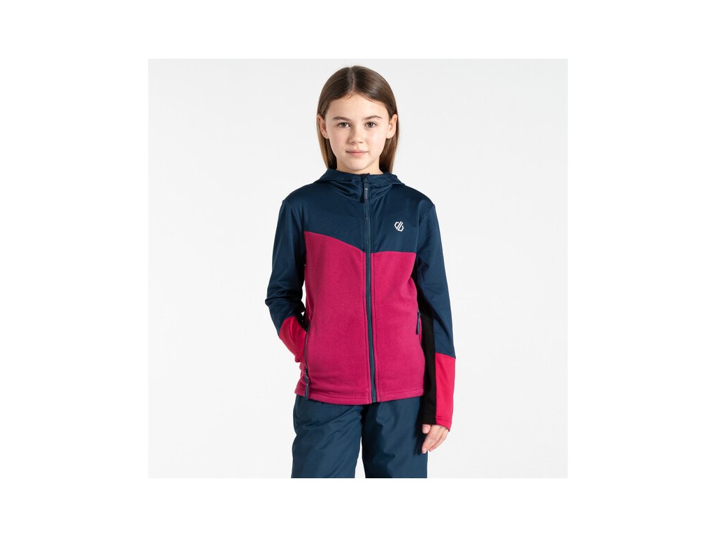 Dětská střední vrstva, vyrobená z naší recyklované tkaniny iLUS Core Stretch - kombinující vlastnosti 4-směrného strečování - poskytuje neomezený pohyb. Fleecové panely je udrží v teple a pohodlí. Díky přírodní antibakteriální úpravě kontroly zápachu zůstanou svěží i na cestách. Dětská bunda na zip je zakončena UV50+ ochranou. Recyklovaná štětcová strečová tkanina s příjemnými pruhovanými melanžovými fleecovými panely - Ilus Core Vyrostlé na kapuci Zip po celé délce Vnitřní zip a chránič brady 2x spodní kapsa na zip UV ochrana (UPF) 50+