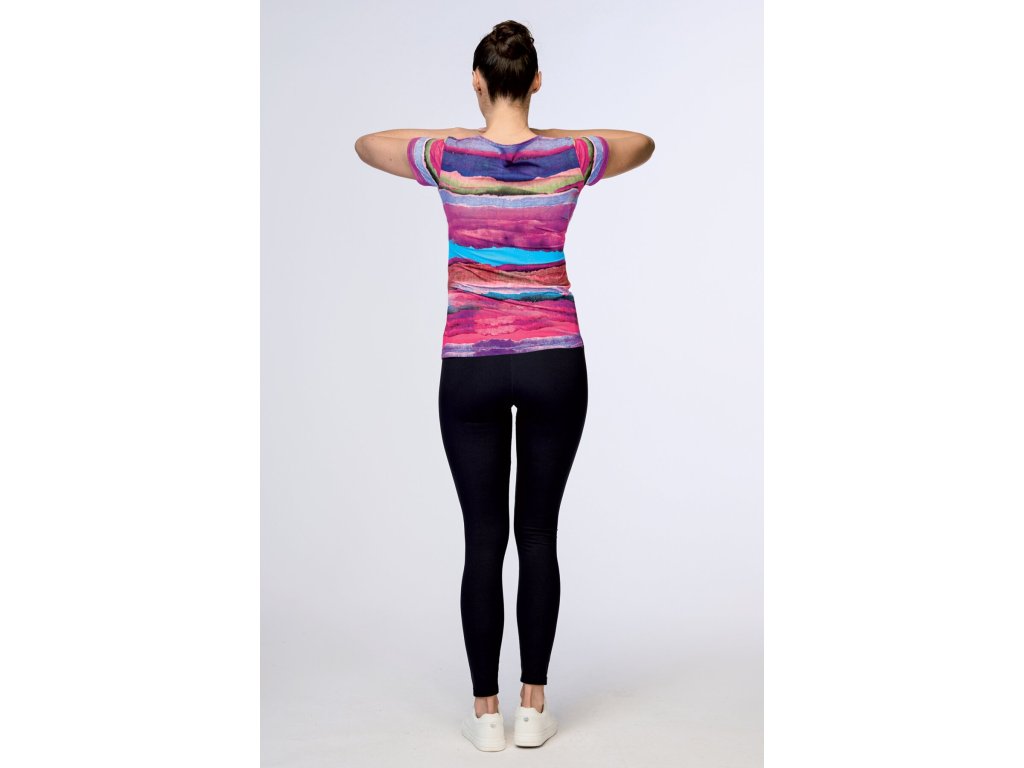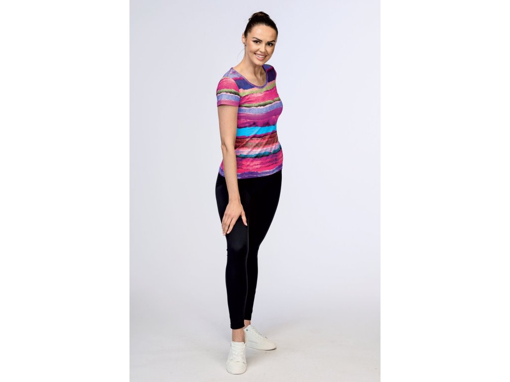 Dámské tričko s kulatým výstřihem, krátkými rukávy a kontrastním potiskem. Tričko je vyrobené z luxusního funkčního materiálu s úpravou Aquamove, který výborně odvádí vodu a pot od pokožky a udržuje tak tělo v naprostém suchu. Materiál je jemný, pobroušený, vysoce elastický a prodyšný.