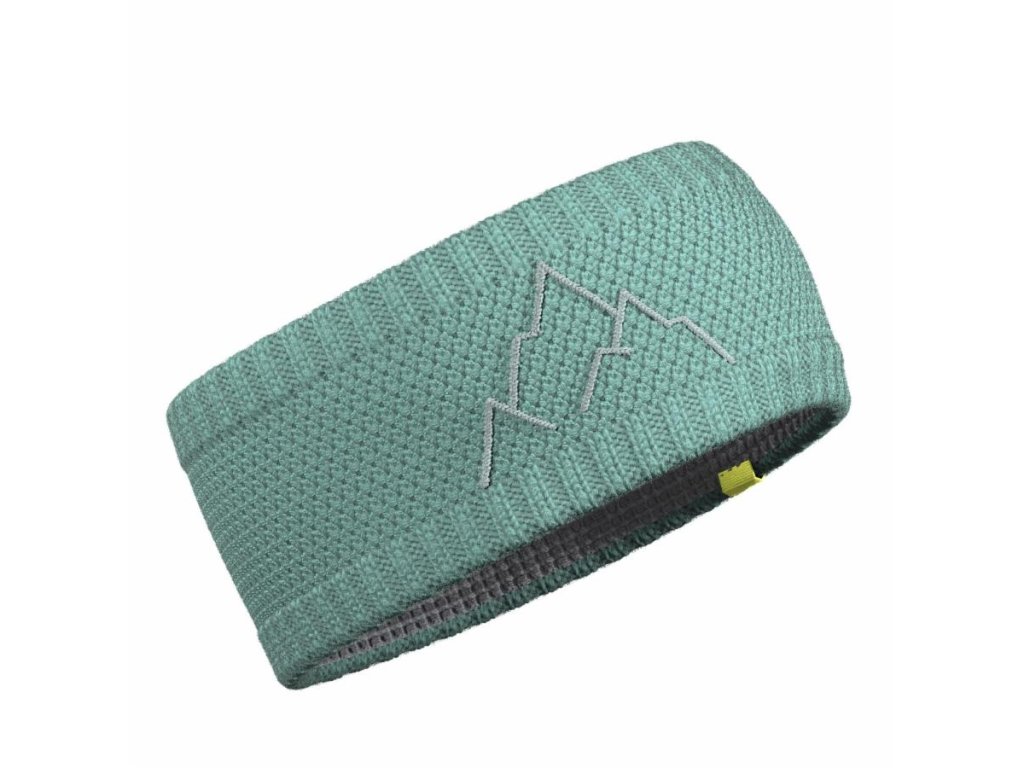 Pletená čelenka z merino vlny s barevně kontrastní výšivkou. Na vnitřní straně má čelenka funkční syntetickou podšívku. Klasický způsob pletení čelenky přechází na krajích k žebrovanému úpletu , který se dobře přizpůsobí obvodu hlavy a zároveň působí jako dekorativní prvek. Moderní design čelenky v přírodním materiálu dokresluje kontrastní výšivka hor.