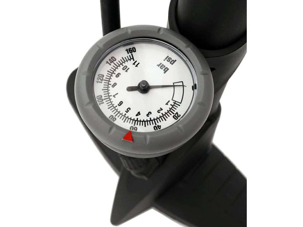 Výkonná nožní hustilka MAX1 Service s duální hlavou a manometrem. Tělo vyrobené z nylonových vláken.