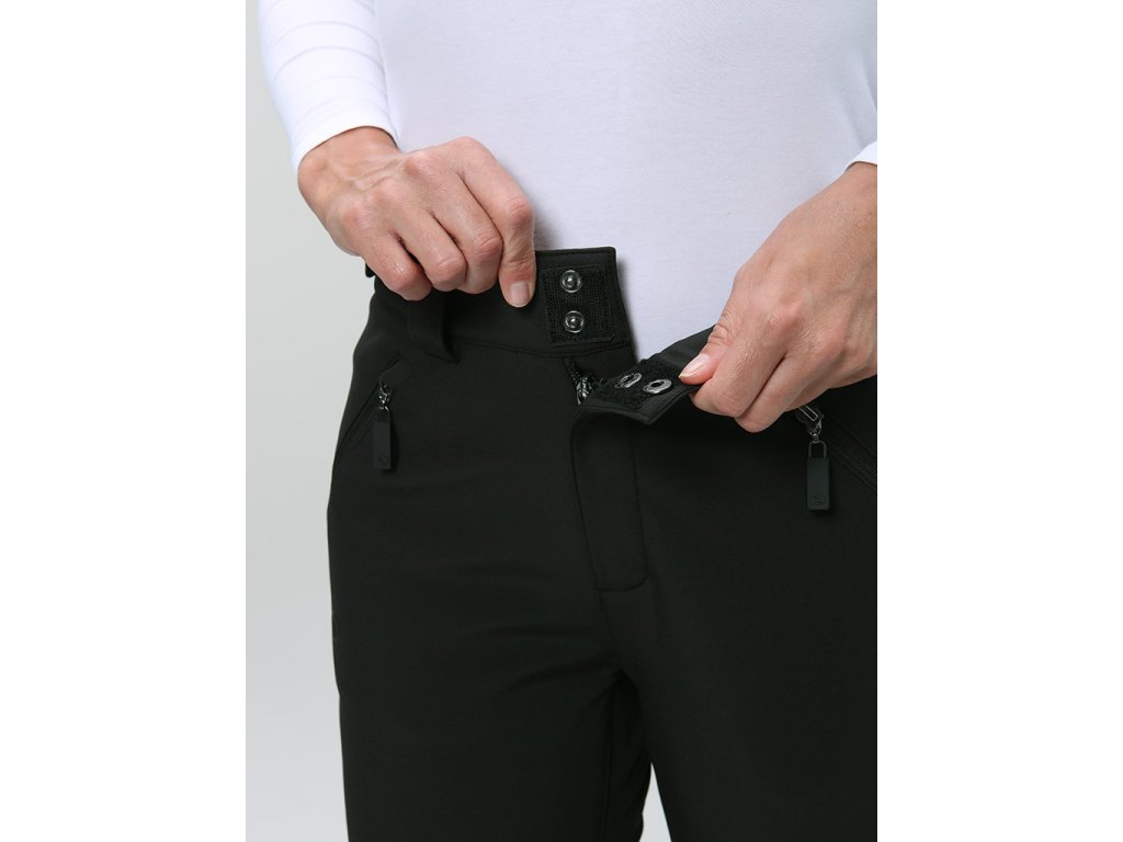 Dámské elastické kalhoty s voděodolnou membránou v přední části. Materiál na zadním díle je elastický a prodyšný. Kalhoty mají stahování v pase a zip v dolním kraji nohavic.