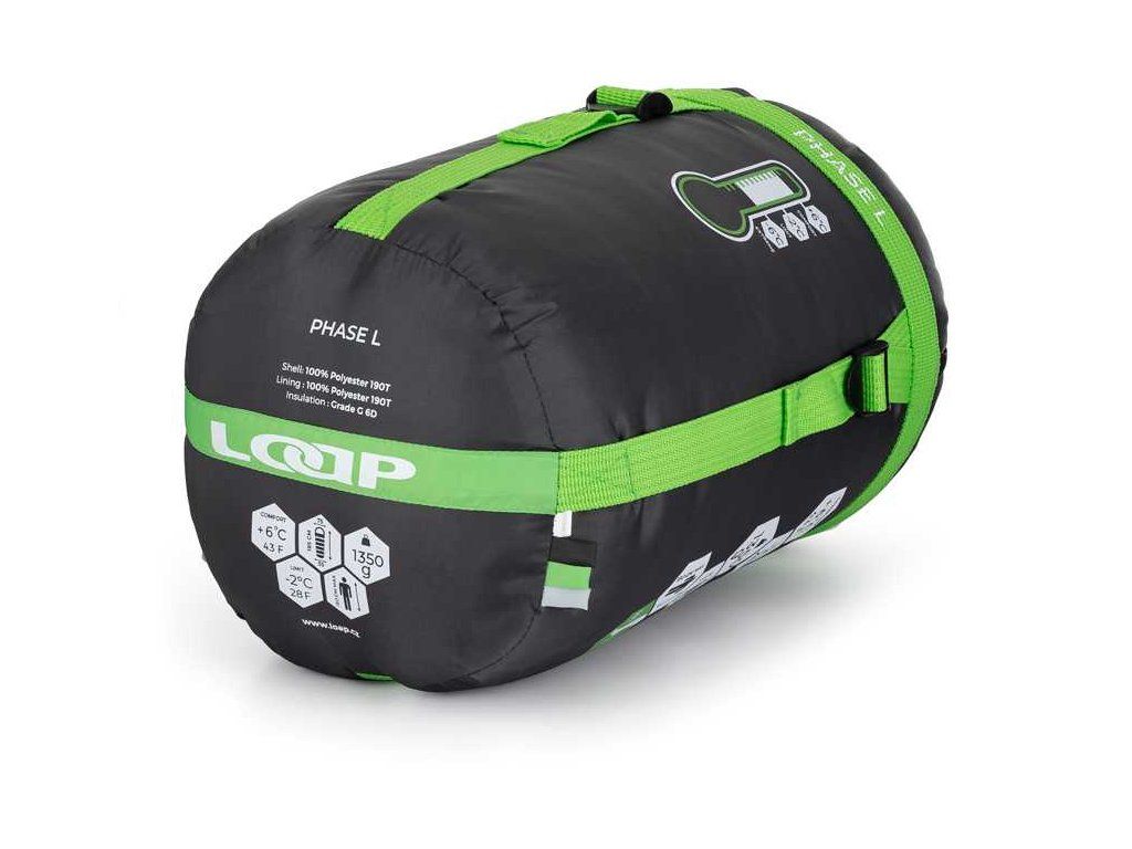 Ve spacím pytlu Loap PHASE L s komfortní teplotou 6 °C se příjemně vyspíte během letních dnů, při optimálním počasí s teplejšími nocemi jej můžete přibalit i na jaře či na podzim. Spacák je dvouvrstvé, tzv. sendvičové konstrukce s vnější a vnitřní stranou z kvalitního, odolného polyesteru. Výplň tvoří dutá vlákna Grade G6D, výhřevnost také pozitivně ovlivňuje mumiový tvar, zatímco úniku tepla od hlavy brání stahovací kapuce a vnitřní stahovací límec. Praktickým prvkem je vnitřní kapsa pro uložení například mobilu, dokladů nebo čelovky.