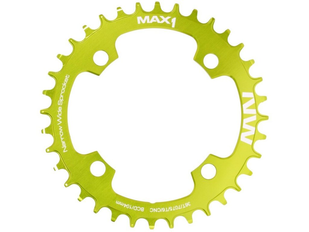 Převodník MAX1 Narrow Wide pro montáž na kliky s roztečí 104mm.Tvar zubů zajišťuje hladký chod a stabilitu řetězu s převody 1x10 nebo 1x11, převodník je tedy možné použít jak na 10-ti, ale i 11-ti rychlostní řazení.