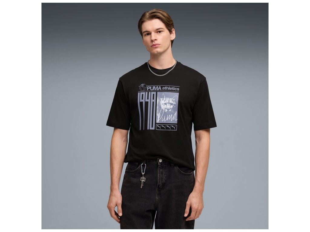 Pánské melírové tričko s kontrastním potiskem a s krátkými rukávy. Tričko je vyrobené z příjemného materiálu s vyšším podílem bavlny.