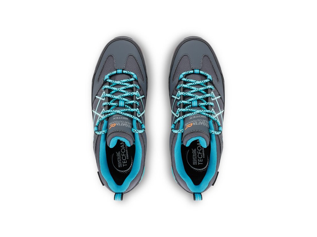 Naše dámské turistické boty Samaris III Low jsou nepromokavé, odolné a polstrované, takže se s nimi budete moci vydat na dobrodružství. Díky technologii Isotex jsou tyto boty plně nepromokavé, aby se zabránilo pronikání deště a stříkance. Dámské turistické boty mají stélku TECFOAM, která poskytuje vynikající pohodlí. Pohodlná mezipodešev z EVA s tlumící patou chrání před nárazy po cestě. Svršek: Odolný, voděodolný technický syntetický materiál pomáhá odpuzovat vodu Robustní síťovina odolná proti oděru umožňuje snadné čištění Polstrovaný pěnový límec a jazyk pro pohodlí Vnitřní vrstva: Membrána ISOTEX nabízí ideální prodyšnou hydroizolaci Tvarovaná otevřená pěnová stélka TECFOAM poskytuje vynikající a flexibilní pohodlí pod nohama Ochrana: Měchovitý jazyk zabraňuje vniknutí nečistot a úlomků Ochranná technická syntetická tužinka Blatník proti oděru chrání před úlomky a oděrkami od kamenů Podešev: Mezipodešev EVA s tlumící vložkou v patě - lehké odpružení a stabilita Odolná gumová podešev nabízí vynikající přilnavost a trakci Technologie Isotex: Voděodolná, prodyšná a větruodolná membránová technologie Materiál 52% polyuretan; 48% polyester Vyrobeno v Číně