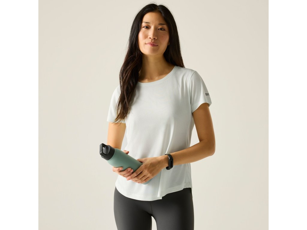 Dámské tričko s kulatým výstřihem, krátkými rukávy a kontrastním potiskem. Tričko je vyrobené z luxusního funkčního materiálu s úpravou Aquamove, který výborně odvádí vodu a pot od pokožky a udržuje tak tělo v naprostém suchu. Materiál je jemný, pobroušený, vysoce elastický a prodyšný.