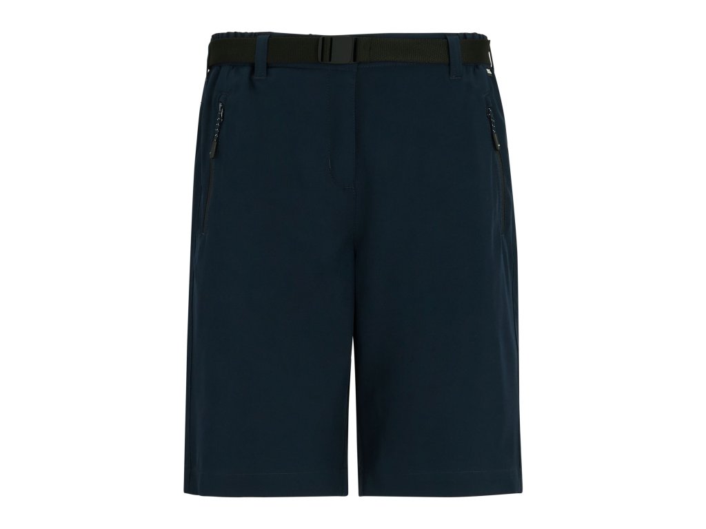 Volnější kratší dámské kraťasy s klínovými kapsami a širší gumou v pase.