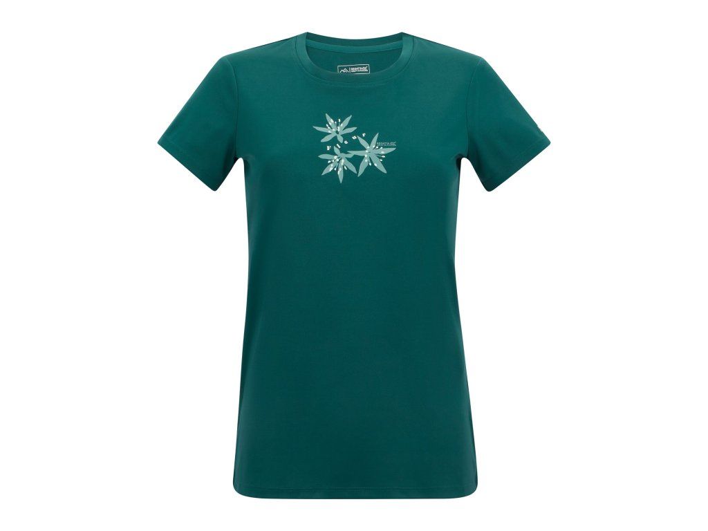 Bavlněné dámské tričko s krátkými rukávy, kulatým výstřihem a kontrastním postiskem.