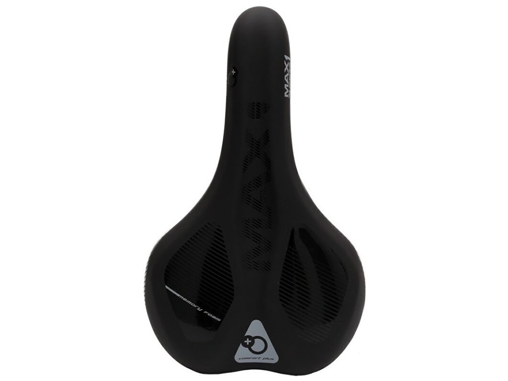 pohodlné turistické sedlo MAX1 Ergo Plus s vloženou paměťovou pěnou, rozměry: 264x162 mm, černá matt/lesk design