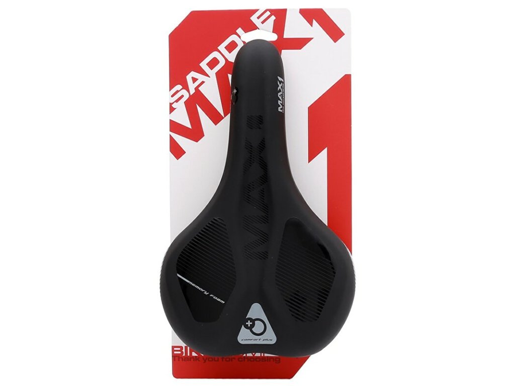 pohodlné turistické sedlo MAX1 Ergo Plus s vloženou paměťovou pěnou, rozměry: 270x140 mm, černá matt/lesk design