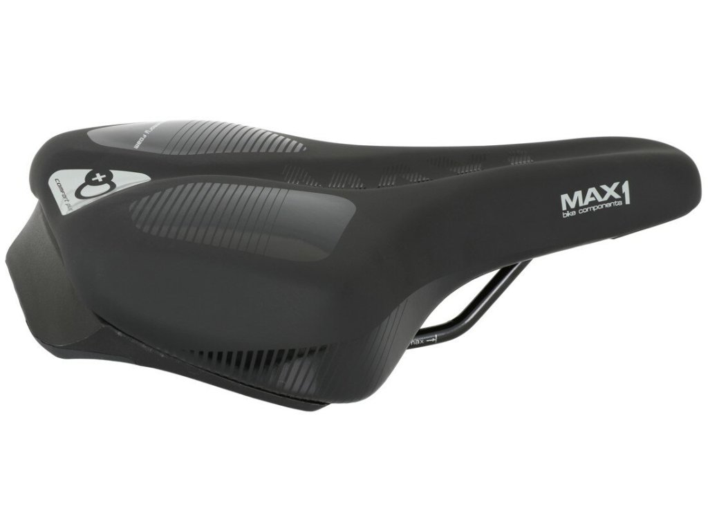 pohodlné turistické sedlo s madlem MAX1 Ergo Plus s vloženou paměťovou pěnou, rozměry: 261x164 mm, černá matt/lesk design