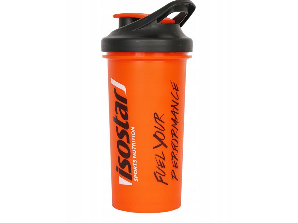 šejkr má na boku bílý nápis ISOSTAR a je lehce průhledný