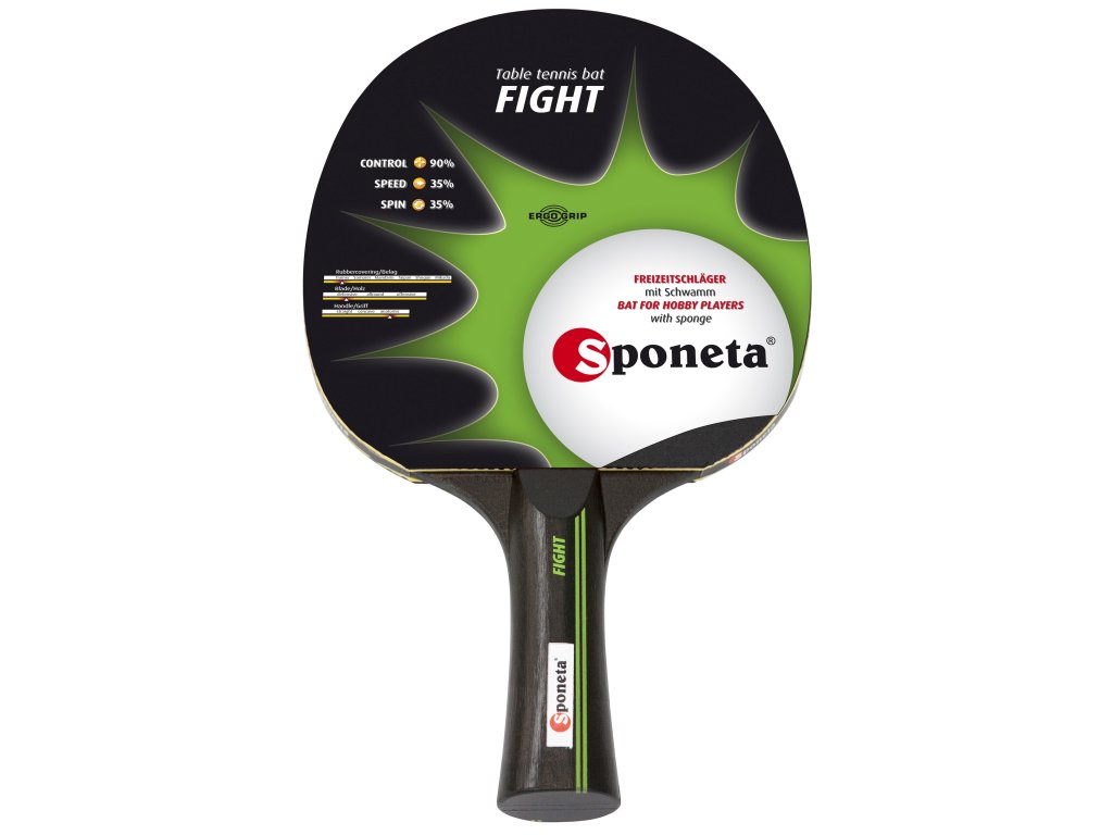 Pálka na stolní tenis Sponeta Fight je ideální pro lepší rekreační hráče, kteří preferují obrannou hru. Tato pálka disponuje tvarovanou anatomickou rukojetí pro pohodlný úchop a lepší kontrolu. Výška mechového potahu je 1,0 mm, což zajišťuje dobré herní vlastnosti.