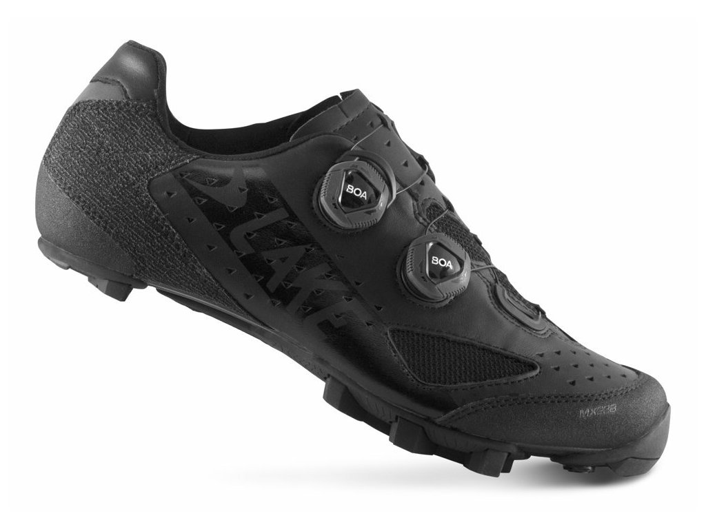 Závodní MTB tretry LAKE MX238 s dvěma upínacími systémy BOA a 100% karbonovou podrážkou Lake Race zajišťující požadovanou tuhost s optimálním přenosem síly na pedál. V kombinaci s gumou Mountain Race X jsou tretry zároveň pohodlné i při chůzi. Svršek modelu je vyroben z kvalitní kůže s dlouhou životností zachovávající si vysokou prodyšnost a voděodolnost. V oblasti paty byl použit jednosměrný fleece zabraňující vyzouvání, který napomáhá udržet nohu na svém místě a předchází nechtěnému pohybu nohy v tretře.Svršek