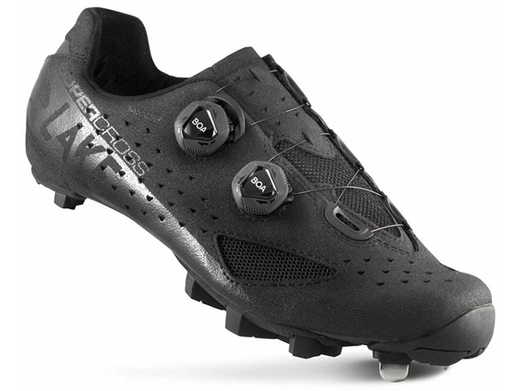 Závodní MTB tretry LAKE MX238 XC s dvěma upínacími systémy BOA a 100% karbonovou podrážkou Lake Race zajišťující požadovanou tuhost s optimálním přenosem síly na pedál. V kombinaci s gumou Mountain Race X jsou tretry zároveň pohodlné i při chůzi. Svršek modelu je vyroben z kvalitní kůže s povrchovou úpravou Helcor se zvýšenou odolností proti odření a dlouhou životností zachovávající si vysokou prodyšnost a voděodolnost. V oblasti paty byl použit jednosměrný fleece zabraňující vyzouvání, který napomáhá udržet nohu na svém místě a předchází nechtěnému pohybu nohy v tretře.Svršek