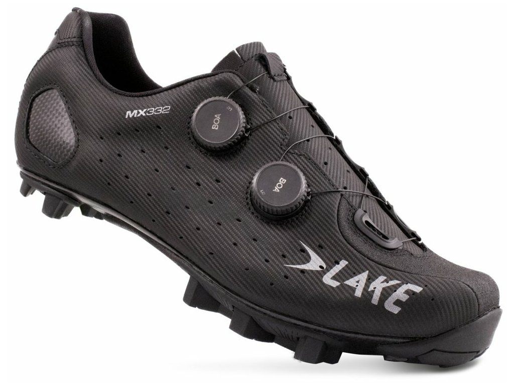 Závodní MTB tretry LAKE MX332 s dvěma upínacími systémy BOA Li2 a 100% karbonovou podrážkou Lake Race zajišťující vysokou tuhost s požadovaným přenosem síly na pedál s možností individuálního tvarování patního karbonového dílu. V kombinaci s gumou Mountain Race X jsou tretry zároveň pohodlné i při chůzi. Svršek modelu je vyroben z kvalitní kůže s povrchovou úpravou Helcor se zvýšenou odolností proti odření a dlouhou životností zachovávající si vysokou prodyšnost a voděodolnost.Svršek